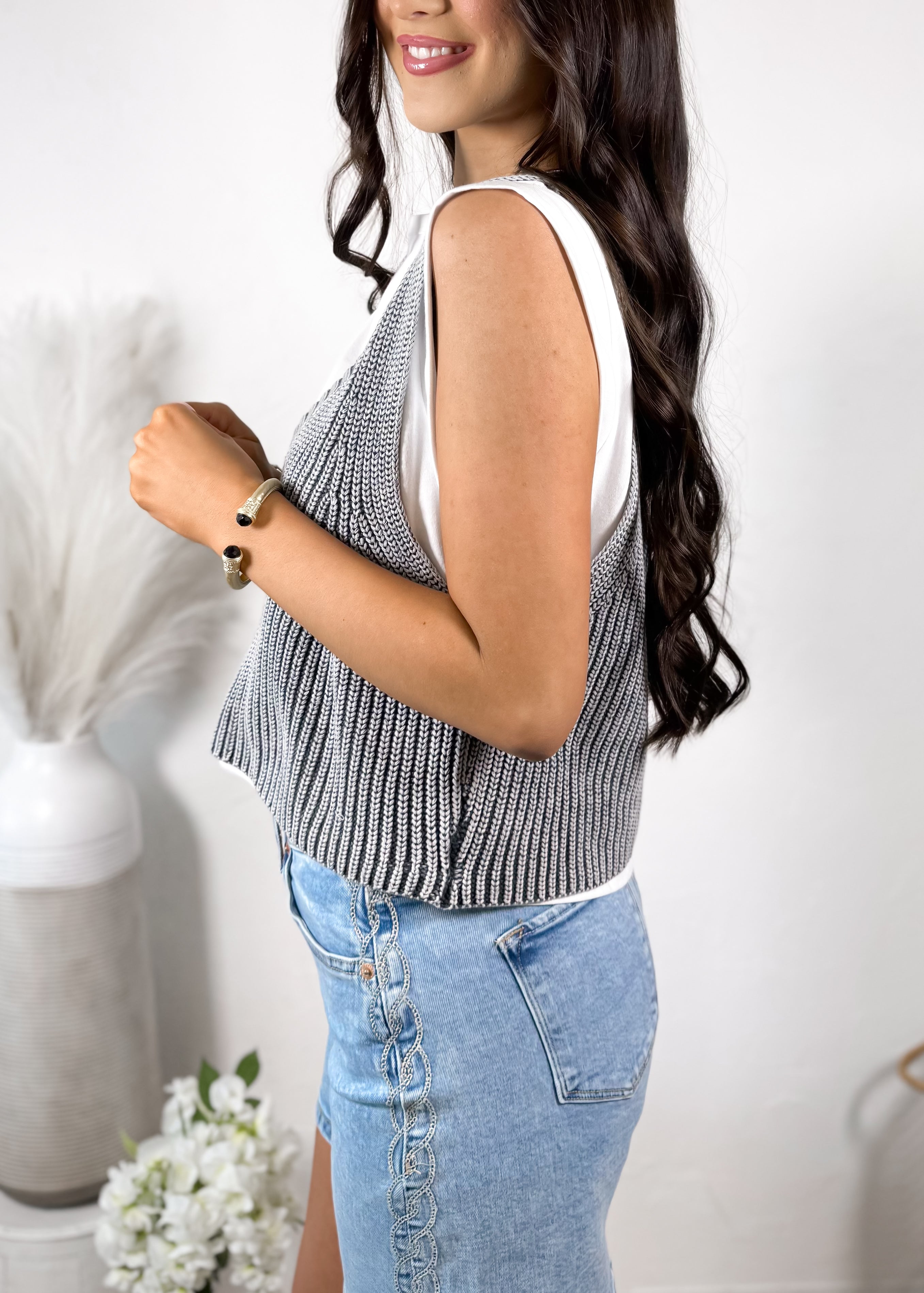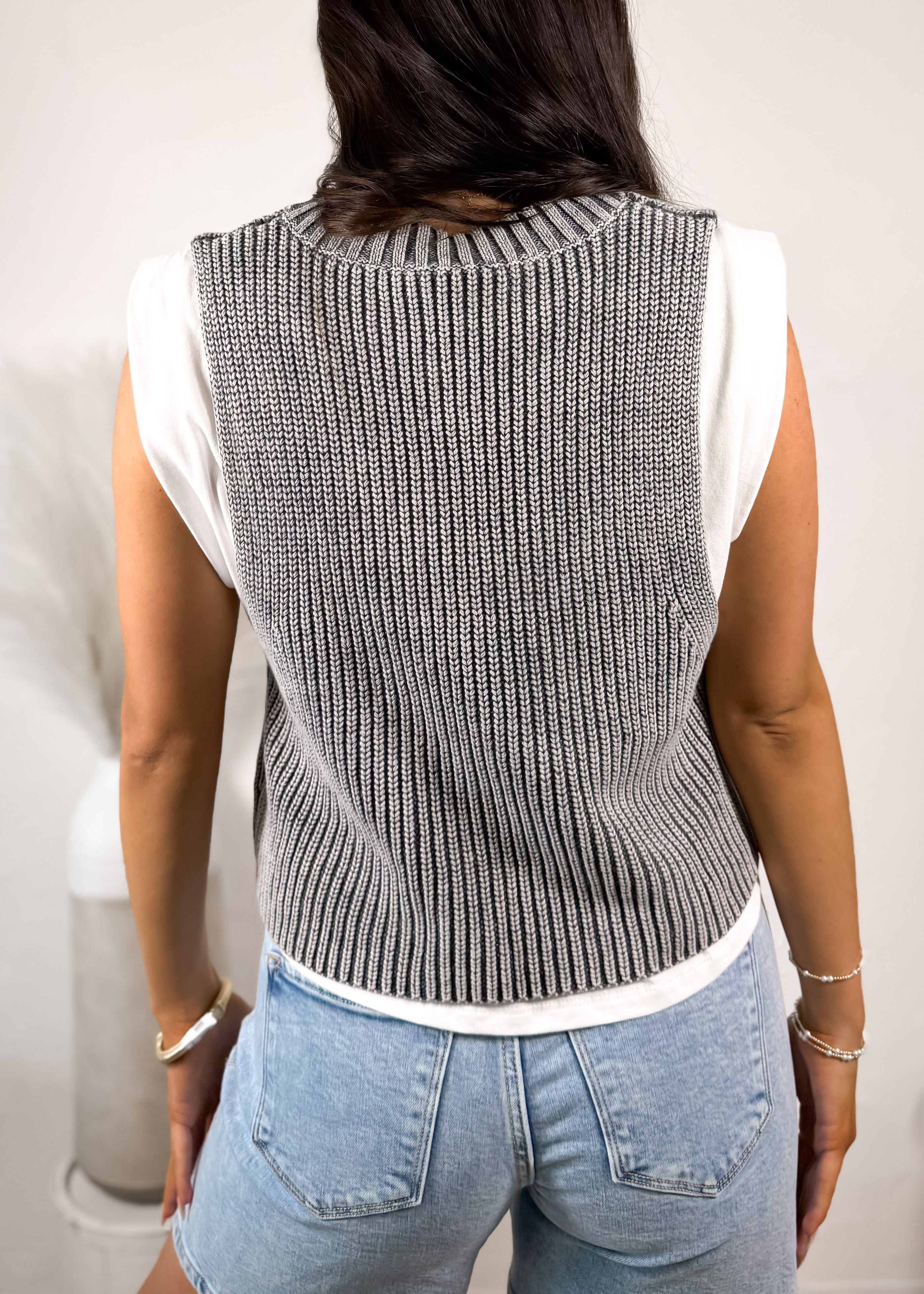 This layered look is such an easy way to elevate your everyday basics 🤍 The ribbed knit vest gives that classic, slightly preppy vibe while still feeling modern and on-trend. We love the deep v neckline and textured knit detail — it adds dimension and makes even a simple tee underneath feel styled and intentional.