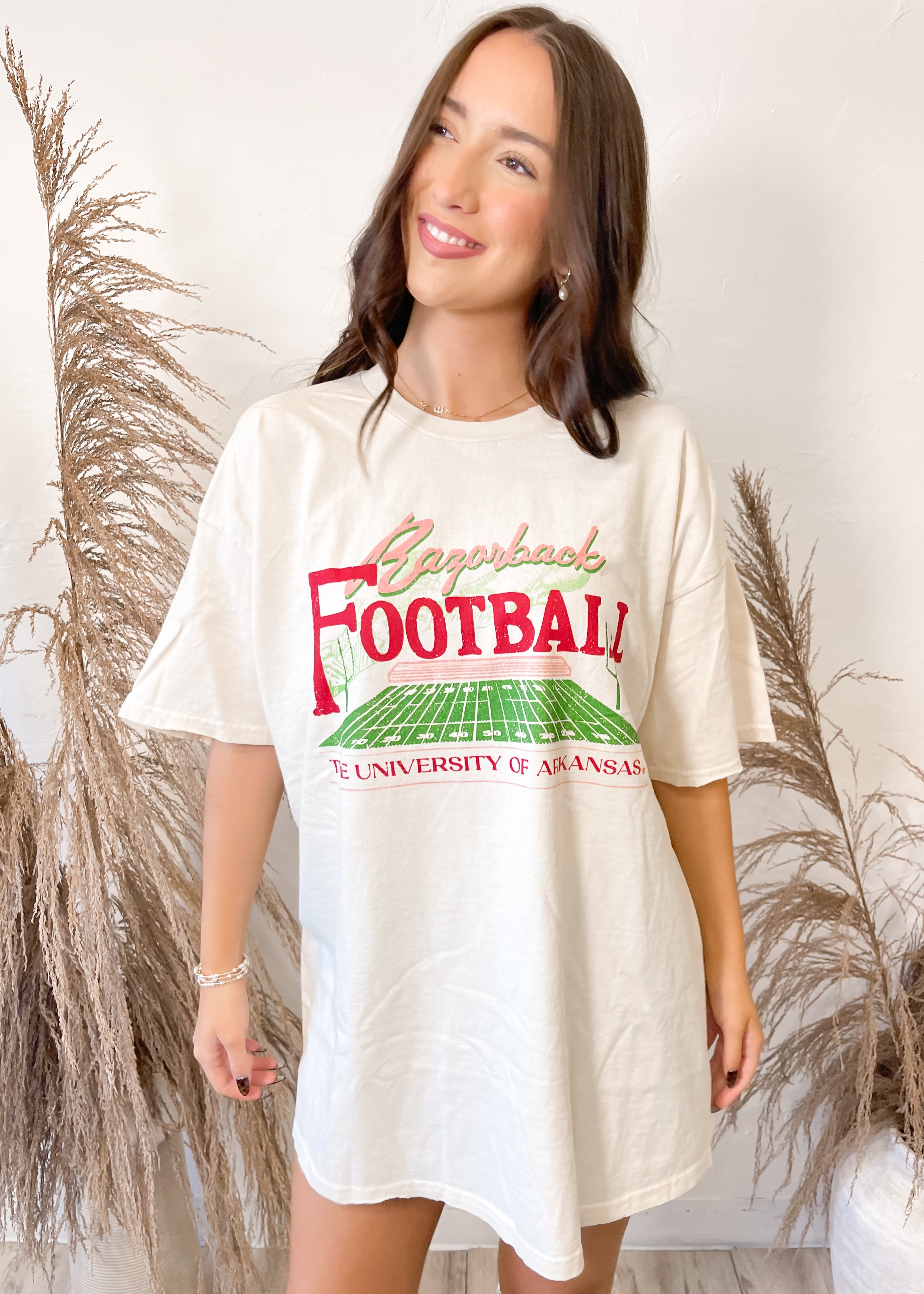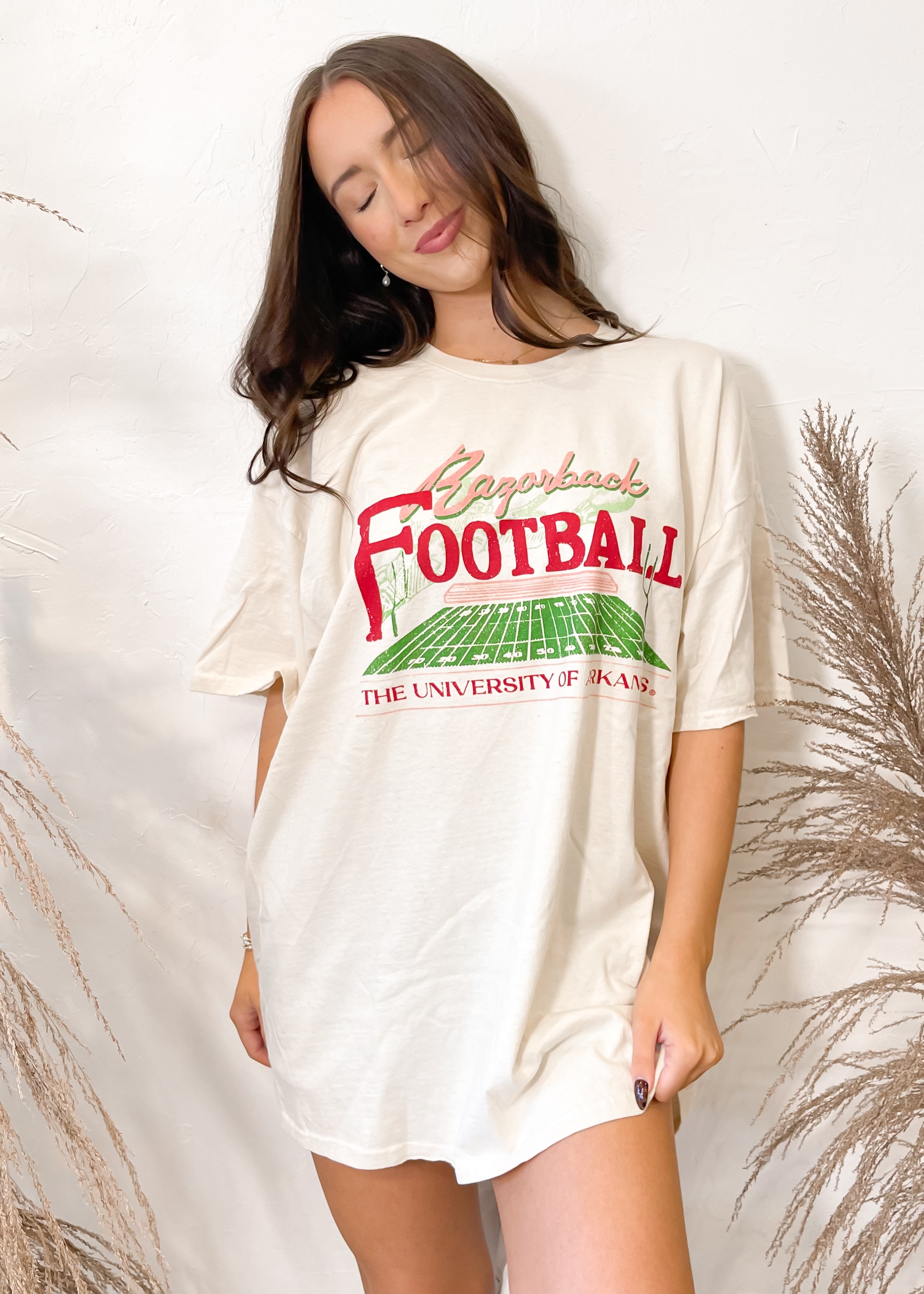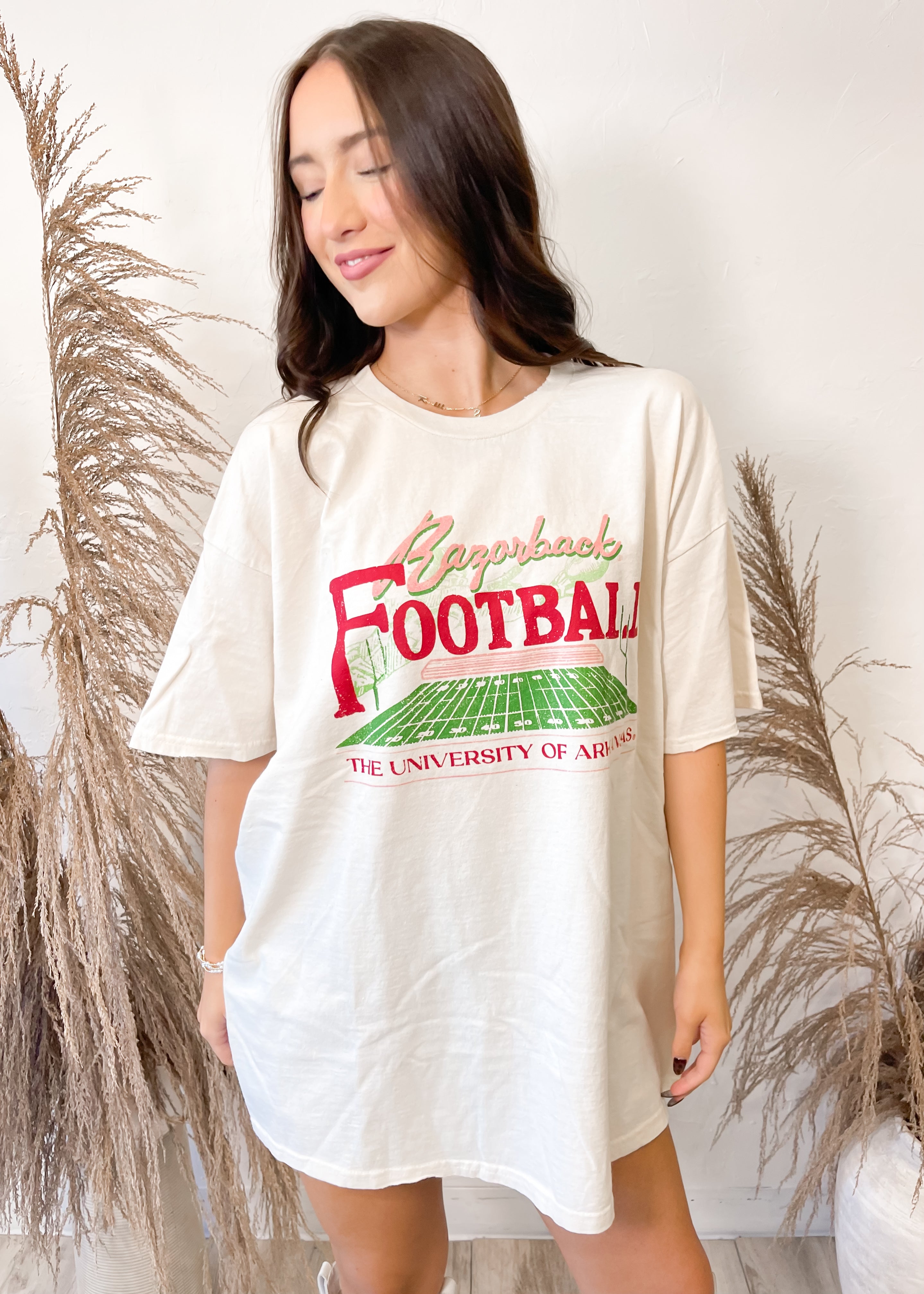 Livy Lu Arkansas Razorbacks Football Field Off White Thrifted Tee