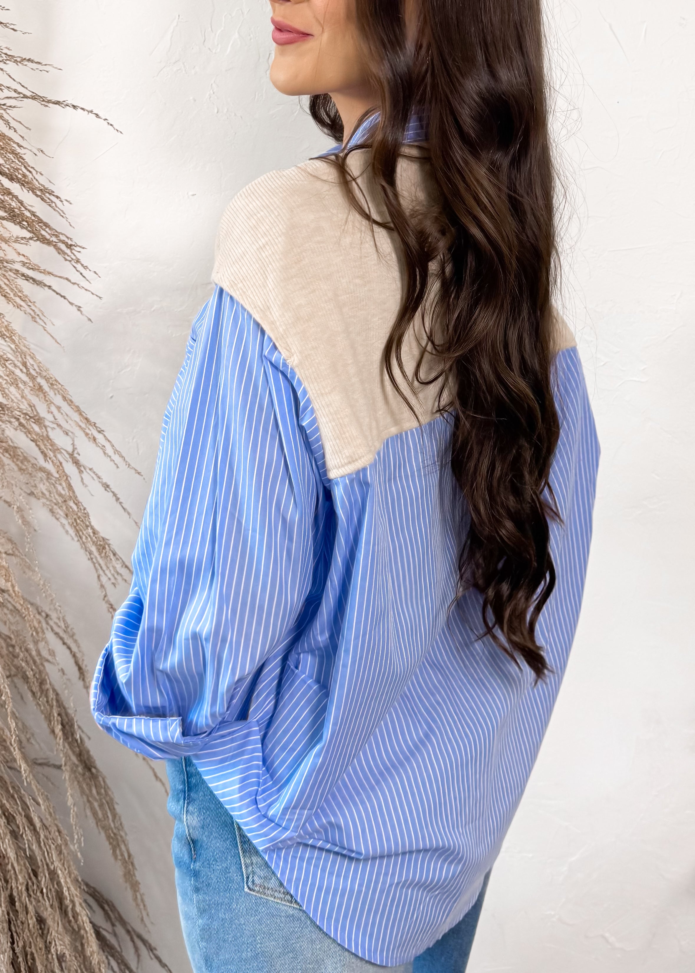Fifth Ave Striped Shirt with Knit Sleeve | Chambray