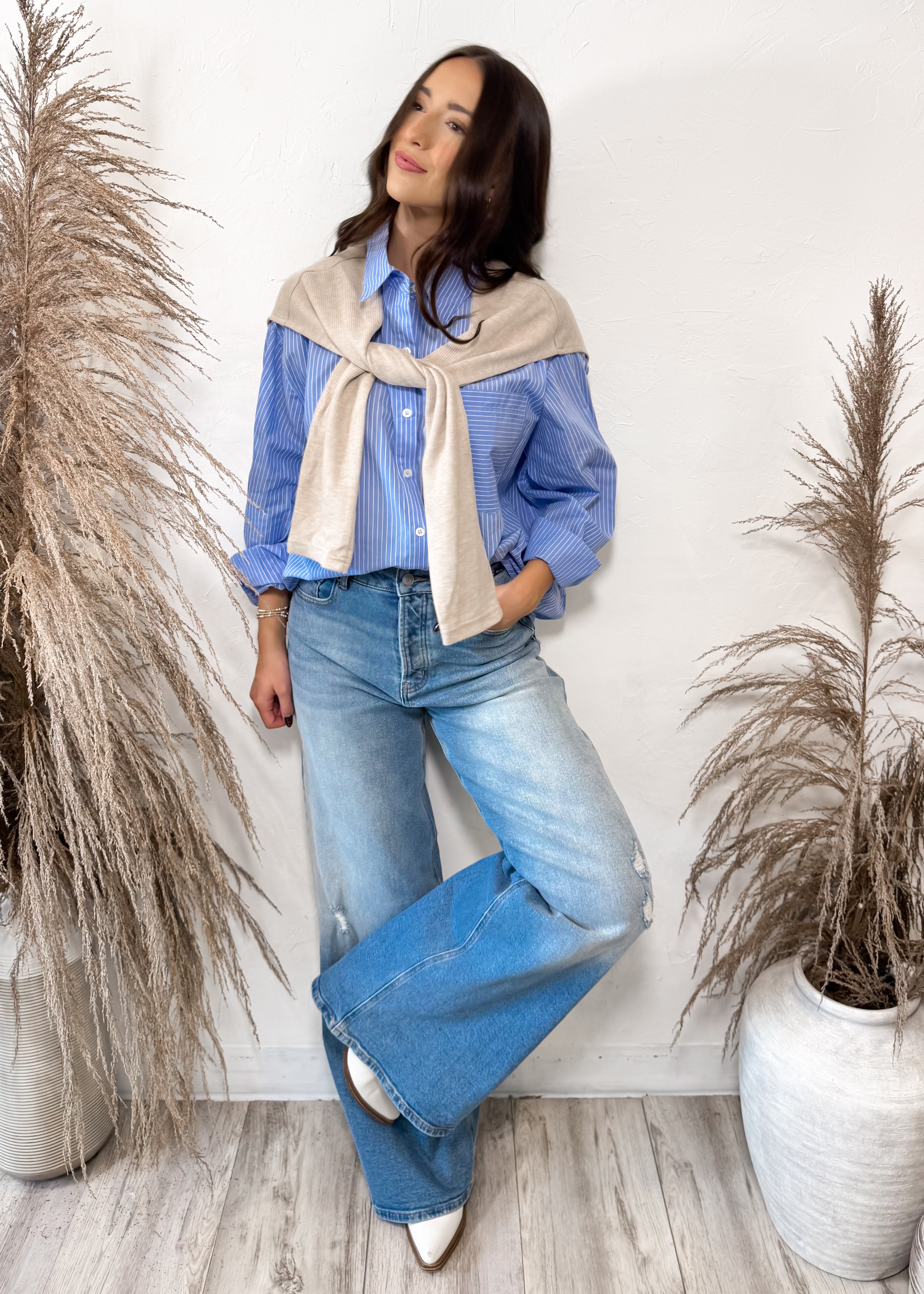 Wear the sleeves buttoned down for meetings or tie them up for a weekend coffee run—either way she looks effortlessly polished.
