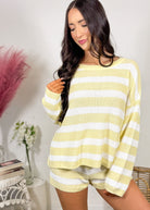 The top features a relaxed, slightly cropped fit with roomy sleeves and the sweetest laid-back silhouette. The matching shorts have a comfortable elastic waistband and an easy fit that makes them perfect for lounging at home, running errands, beach trips, or coffee dates.